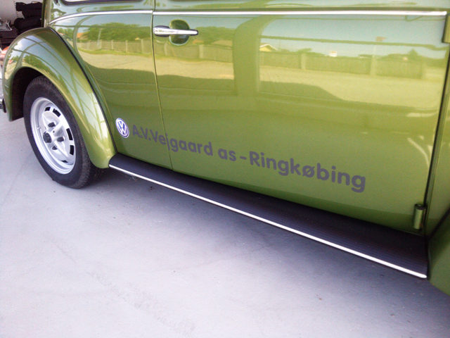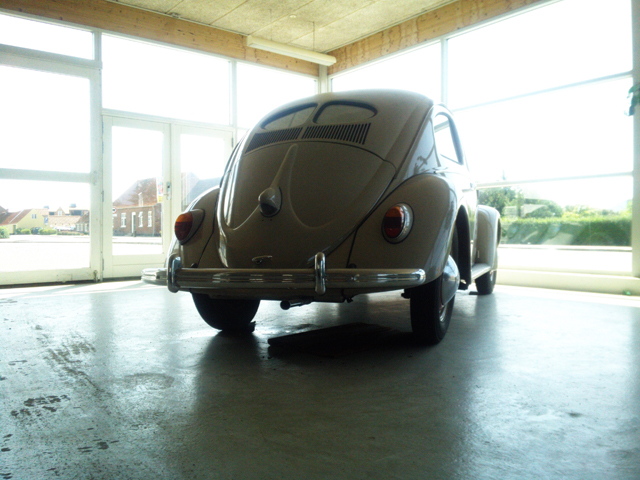Men da vi kjørte gjennom Ringkøbing downtown og dermed forbi den flotte VW-forhandleren så vi at de hadde et eget lokale med tre utstilte luftkjølte. Det ble jo selvsagt sjekket ut, og jeg fikk enkelt en fotodeal med en hyggelig bilselger. Ble vist gjennom verksted og bak til utstillingslokalet, og på veien passerte vi en bay panel som hadde tilhørt en lokal bonde og som nå var kjøpt tilbake for restaurering. Det var forøvrig de tre andre også - alle var opprinnelig solgt av dem, boblene var ikke restaurert, bare "shinet opp" etter hva jeg forsto.