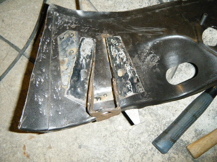 Vart litt meir arbeid her enn planlagt pga da karosserifestet då...... menmen Alt går :) Imorgo tenkte eg å gjera Heilt ferdig denna innerskjermen inkl resten nedi hjørna + sliping..so må eg lesa 130sider om motor til fredagens prøve ::)