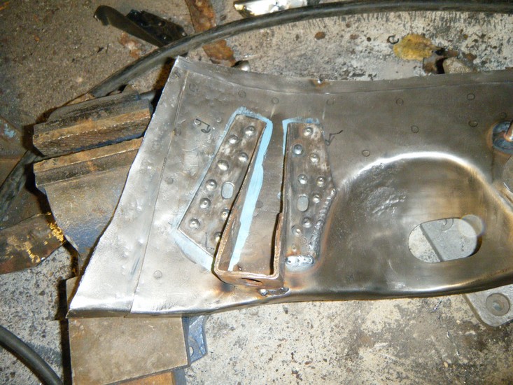Slipt sveisen rundt karosserifesteplato + kappa ut rusta nedi hjørna og fjerna alle restar av plato der
