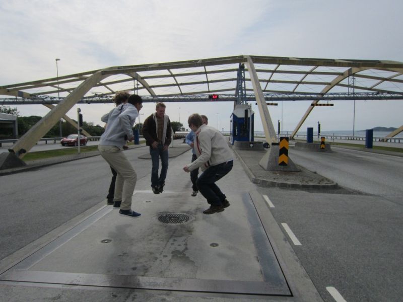 Her ser vi Håkon i det øyeblikket han vurderte å legge igjen to svarte striper på det nymalte fergedekket!