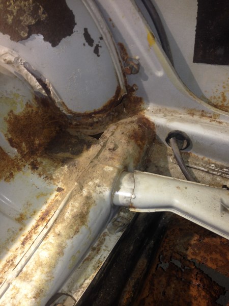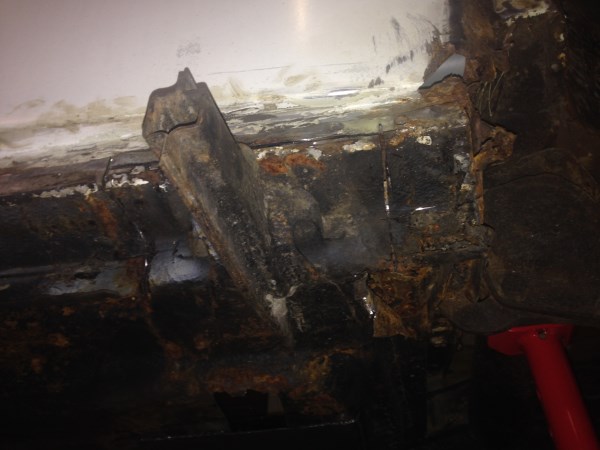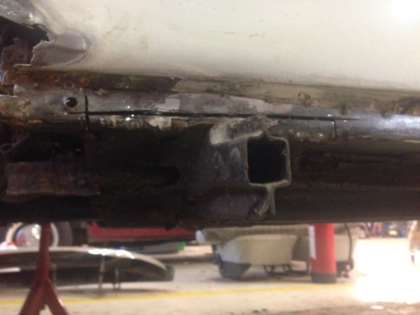 På grunn av tidligere reparasjoner har jeg også måttet kutte rundt jekkfestene bak ettersom disse var sveist fast både i karosseri og bunnplate.