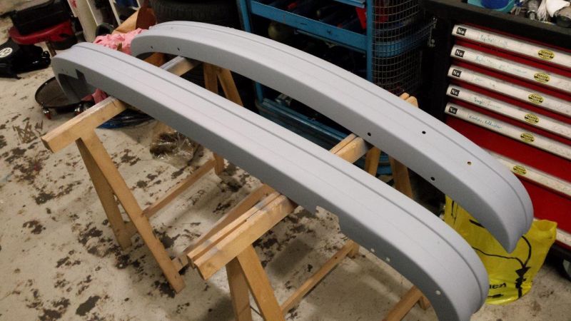 Med vår i luften ble støtfangerfestene og armene til skvettlappene pulverlakkert og montert på bilen