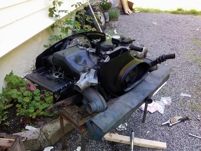Da er dagen begynt godt. Mutteren pirket jeg ut av oljelokket i sumpen, støtstangrør ble donert av Tolo (Tusen takk!