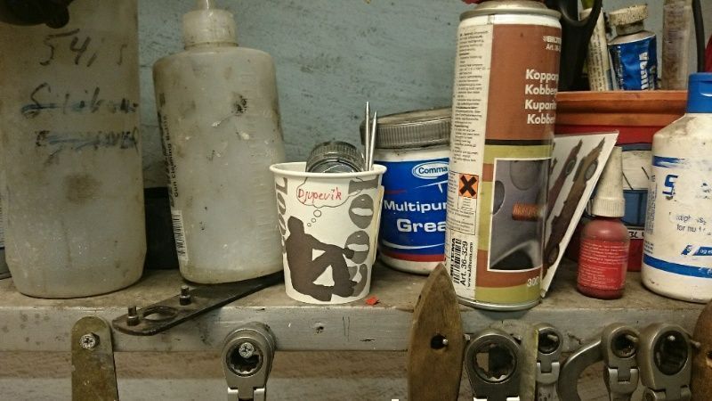 Ikkje så mykje som viser igjen i dag. Litt meir smålapping. Pussing rundt seteskinnene.. Fekk på plass batteriholdaren og lappa eit hol i fronten. Og så prøvde eg noke techtylgreier som eg spraya inni krikar og krokar.