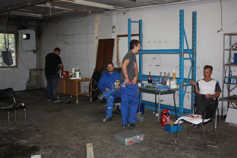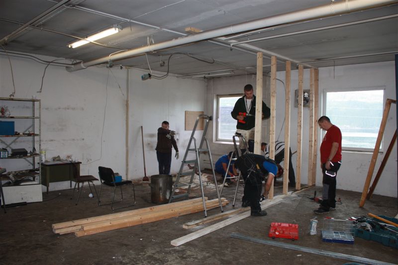 Lørdagene står i effektivitetens navn og i dag fikk vi avrettet gulvet på toalettet, vi fikk kjørt avgårde med en svær lastebil full med byggavfall og vi fikk malt store deler av mekkelokalet med mailng vi, takket være Geir, har fått gratis fra Bergen Malingsfabrikk...!!! Kjempebra!!!