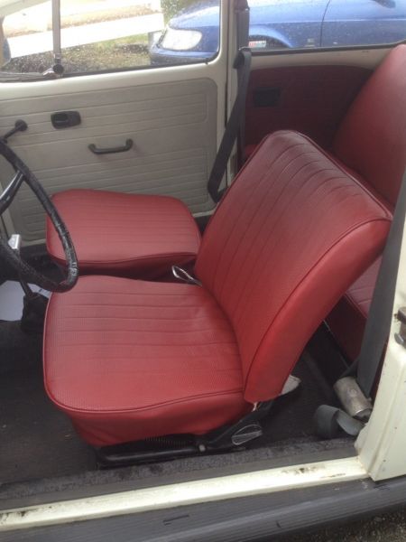 Siden jeg er sykemeldt for tiden kan jeg kun gjøre småjobber. Så jeg har begynt å trekke om setene og bytte dørtrekk osv.