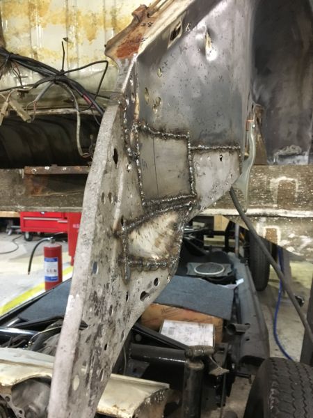 da er jo ein vurderingssak, spørst på kor dårlig baksida er på dei. fordelen med å fiksa innerskjerm og so sveisa på festene er jo at du får muligheiten til å ha sveisegrunning i mellom + behandla innsida av festene veldig bra.