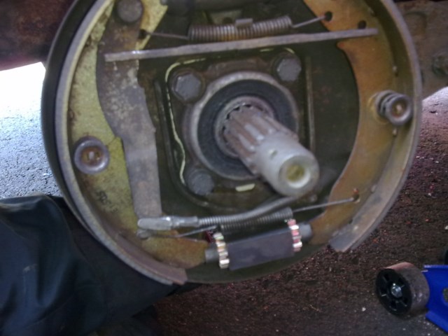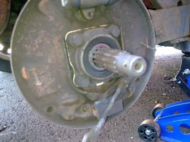 LYKKE!!! Da løsnet mutteren, og vi kunne ta av bremsetrommelen.