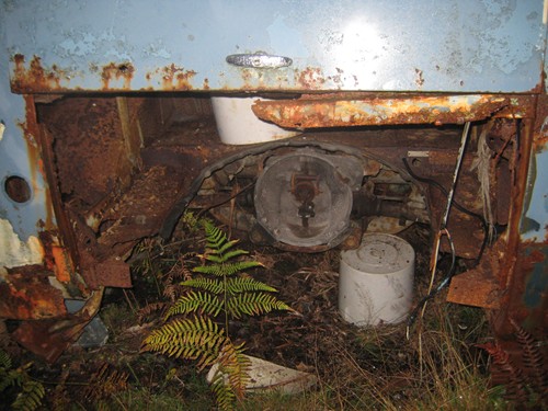 Golvet va forferdelig dårlig då.. Her ser du faktisk rett ner på bakken eller nåken planka som støtta bussen..