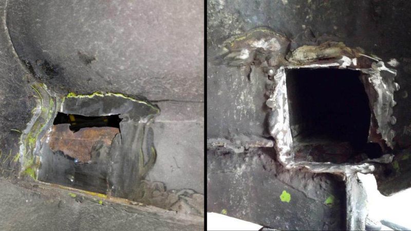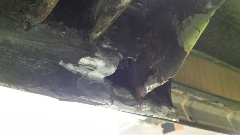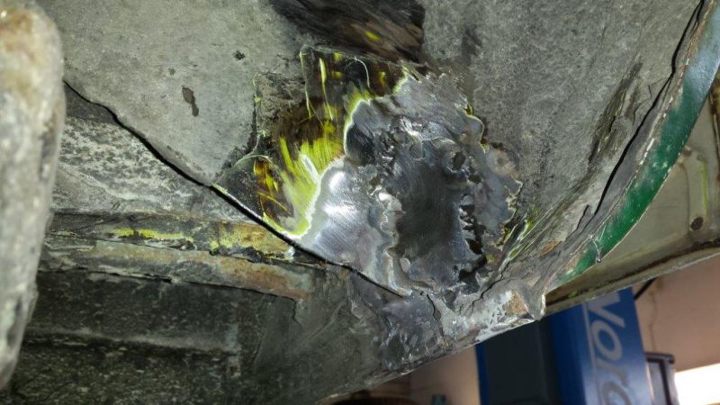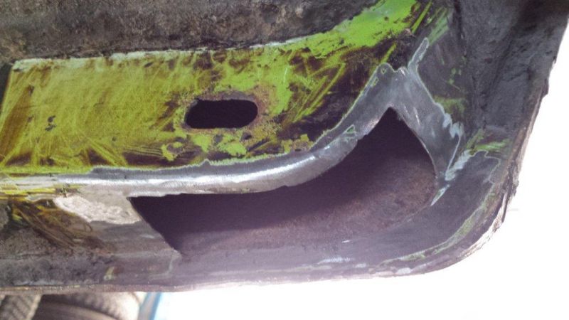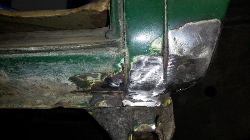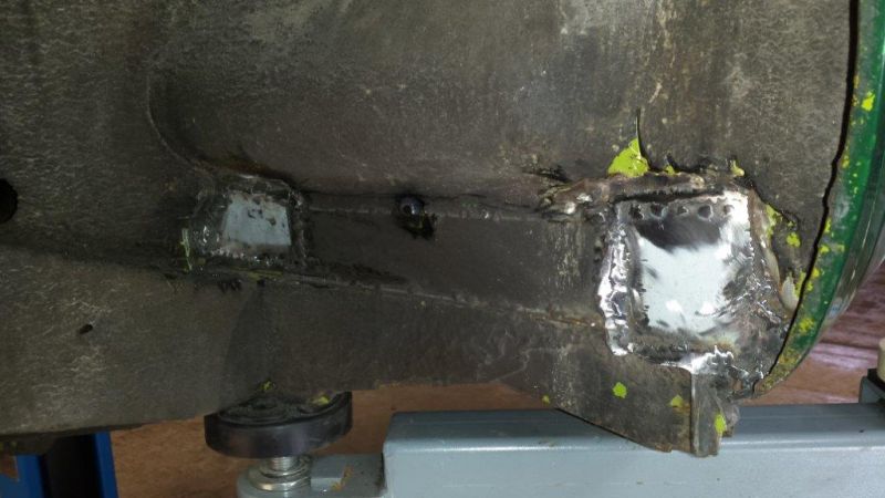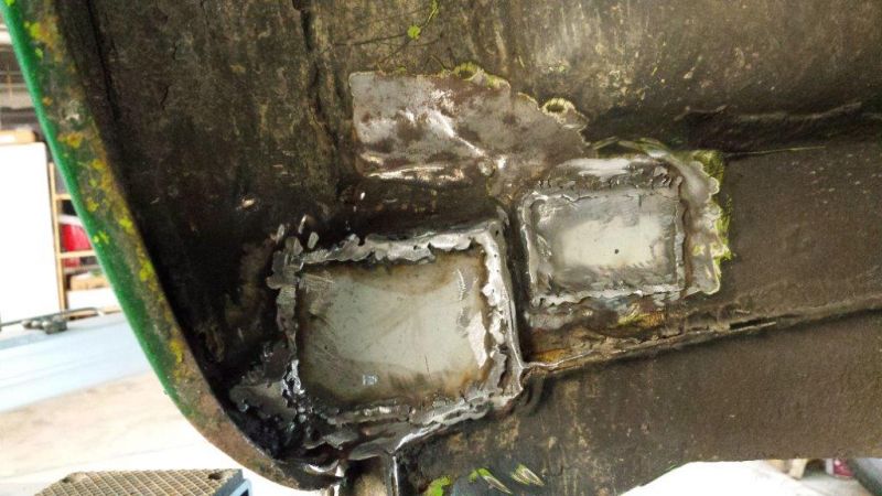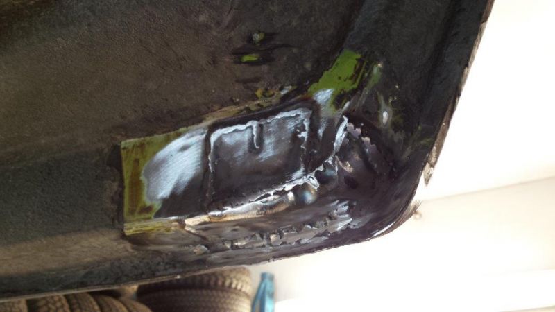 Begynte der jeg slapp i går og gjorde meg ferdig der... først en plate innenfor for å tette, dernest en plate og sveis utenpå...