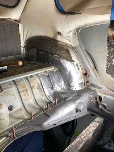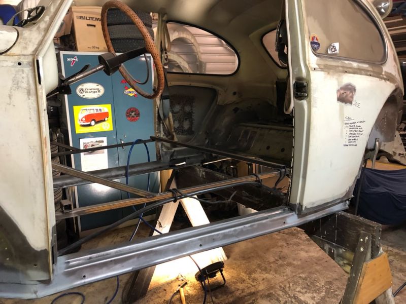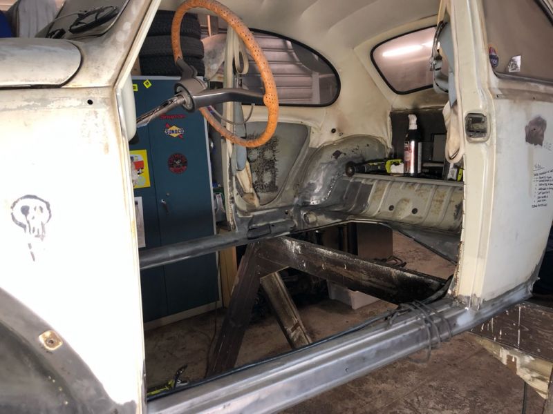 Nå er snart alle karoaseriskruene byttet ut med pluggsveis. Om ikke lenge nå så blir det vel fjerning av firkantrørene som er sveiset fast i døråpningene. Det blir en liten milepel i seg selv
