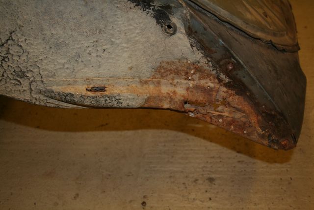 Her må nok både bunnen i reservehjulsbrønnen og dessverre frontplaten byttes.