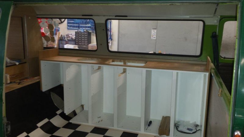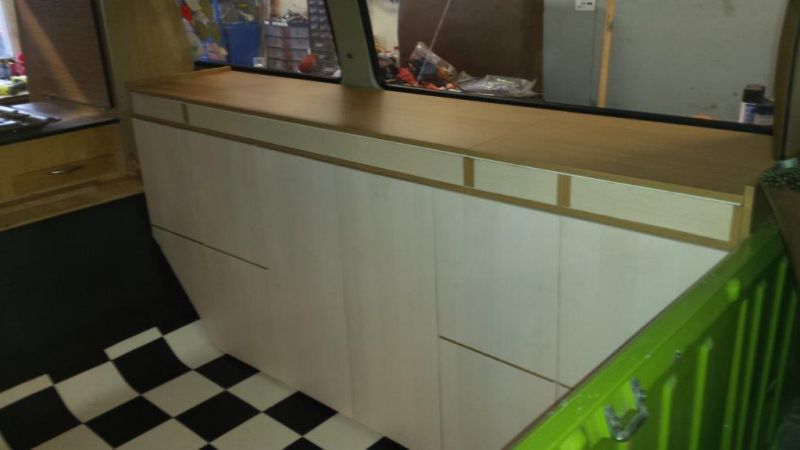 Så ble det foret opp på toppen i for og bakkant, og lagt lokk over... deretter ble det montert dører, 2 normale og 4 modifiserte...