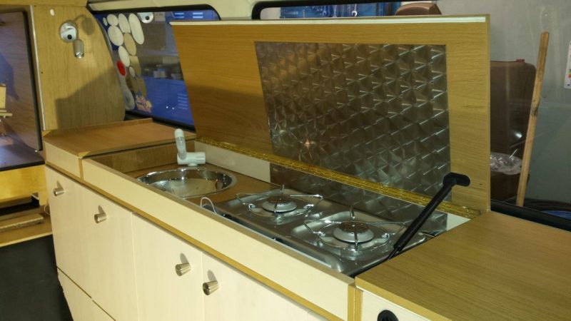 Så ble det skåret ut til vask og kokeapparat, måtte selvfølgelig prøvemontere...