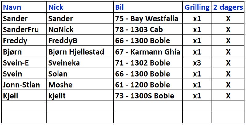 Påmeldinger og tilbakemeldinger kan gjøres i posten under her, på PM eller via mail post@vwacb.com