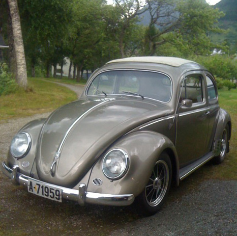 John Kleivset i Agderklubben solgte den til meg, og han har cal-lookifisert den, med kortet puma senkeforstilling, BRM hjul, 1300s girkasse og som sagt stor motor. Motoren ble bygget av ham og kameraten, Konstantin - som vistnok har lang erfaring i å bygge motorer. Jeg kjørte den 40 mil over fjellet på søndag - og den gikk som en klokke uten et feilslag, og uten antydning til å gå varmt. Ungene har gitt den navn: Bråkeboblen :-)