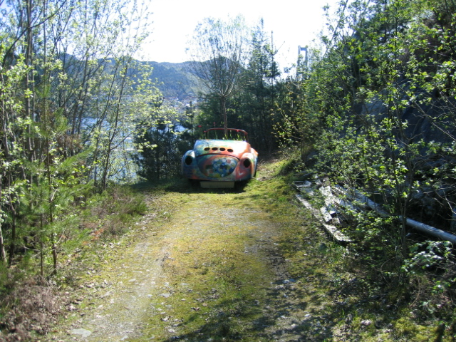 tok ein tur på skattejakt i dag, eg meinte eg såg ei boble ein gang tidlegare, og meinte det var ein cabriolet. I dag skulle det sjekkast ut. Her er resultatet. Eg ville ikkje trakke alt for mykje rundt den, for det er tydlegvis nokon som bryr seg om denne, og det var folk der.