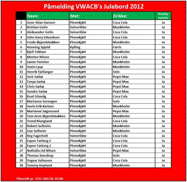 Oppdatert liste legges ut etter hvert som folk melder seg på.... :thup