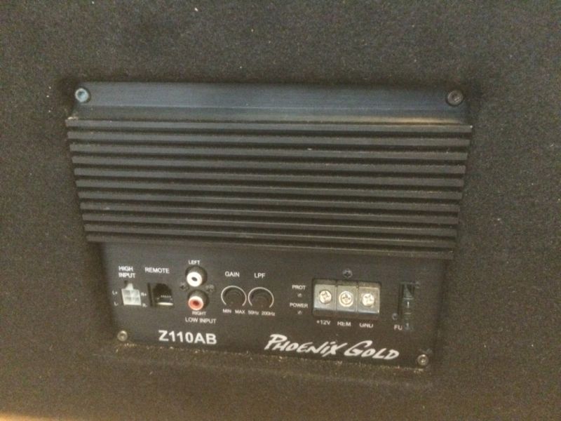 Phoenix Gold Z110AB. Denne virker å fungere fint, men bassrefleksporten og forsterkerdelen henger litt dårlig fast. Forsterkeren har eget kammer, så det vil ikke lekke luft gjennom den når man spiller.