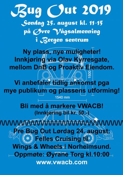 Som vanlig vil vi også i år arrangere Pre Bug Out lørdag 24. august, og i år som i fjor satser vi på en cruising til Norheimsund der det arrangeres Wings and Wheels.